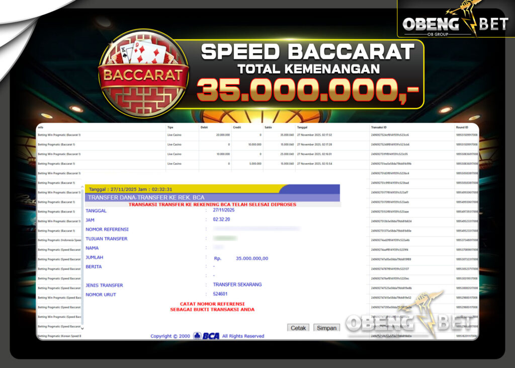 Bukti Kemenangan Member OBENGBET Live Casino 27 Nov 2025 – Situs kami merupakan salah satu situs bandar online terbesar dan