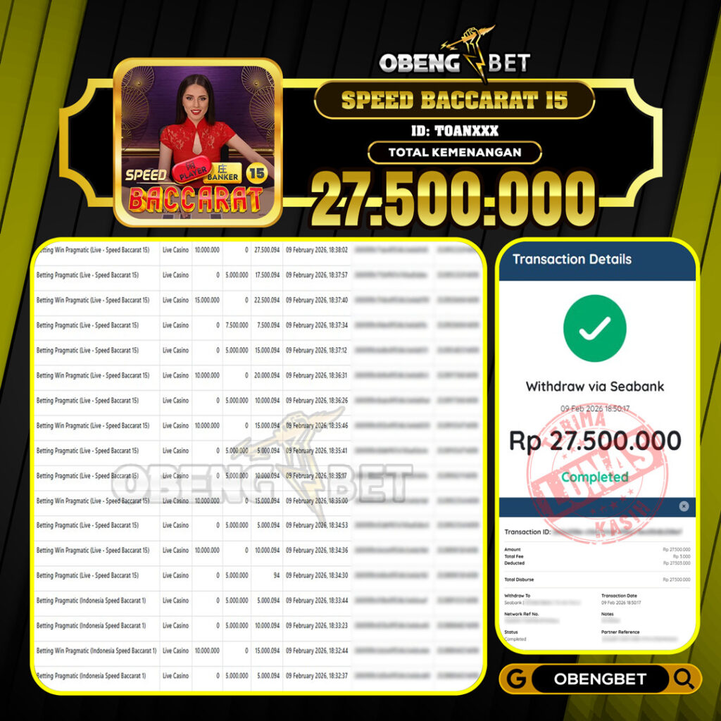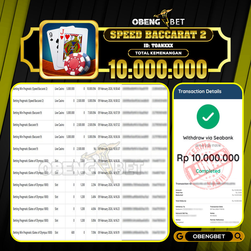 Bukti Kemenangan Member OBENGBET Live Casino 06 Feb 2026 – Situs kami merupakan salah satu situs bandar online terbesar dan