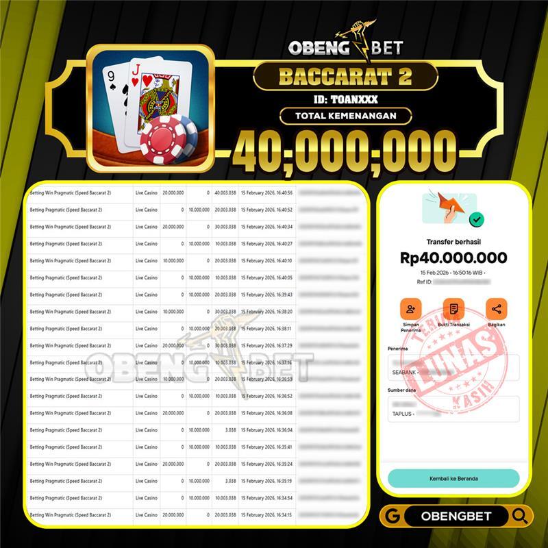 Bukti Kemenangan Member OBENGBET Live Casino 15 Feb 2026 – Situs kami merupakan salah satu situs bandar online terbesar dan […]