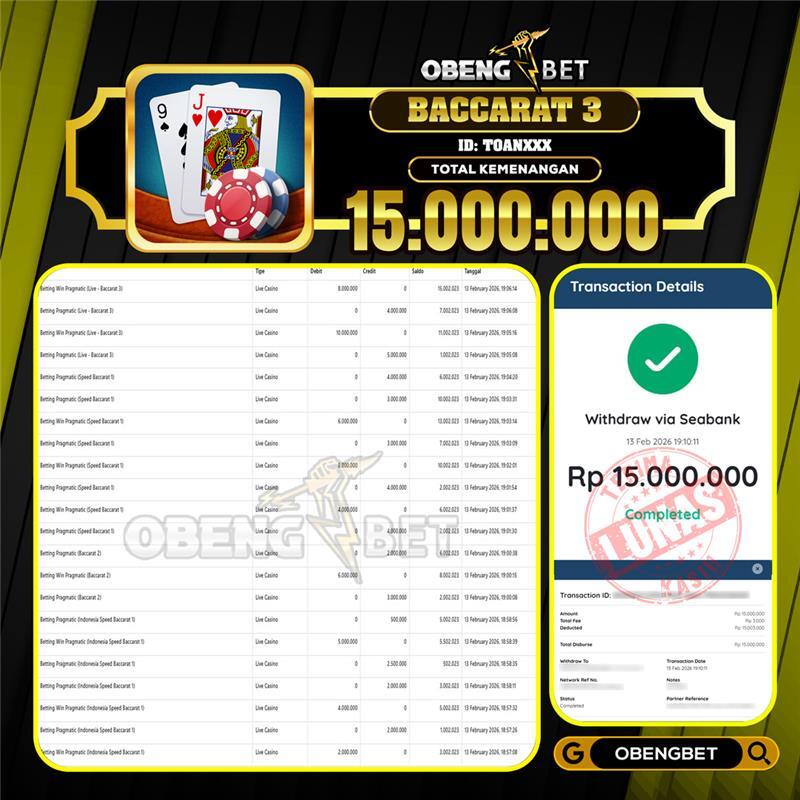 Bukti Kemenangan Member OBENGBET Live Casino 13 Feb 2026 – Situs kami merupakan salah satu situs bandar online terbesar dan