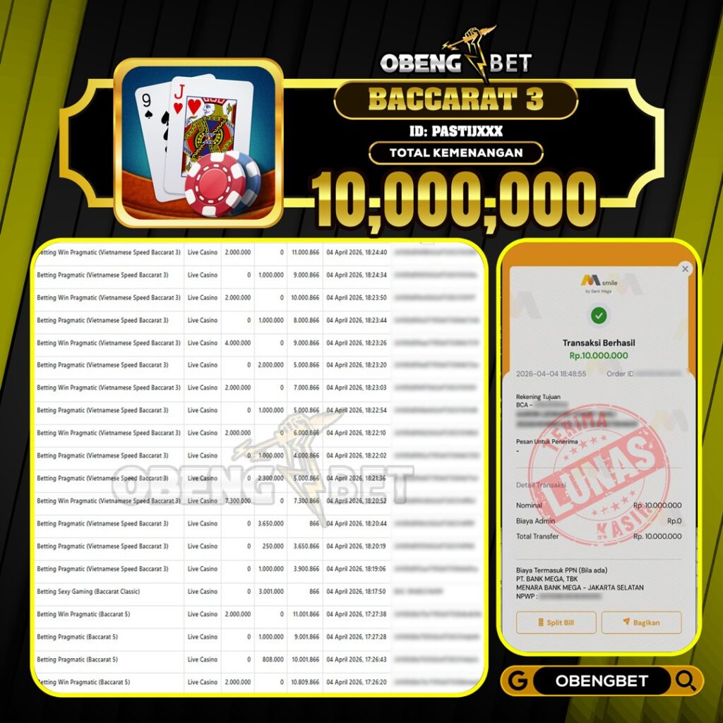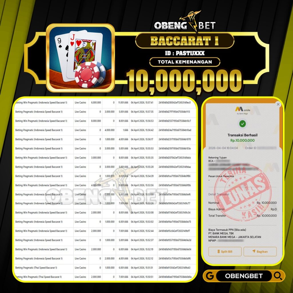Bukti Kemenangan Member OBENGBET Live Casino 04 April 2026 – Situs kami merupakan salah satu situs bandar online terbesar dan