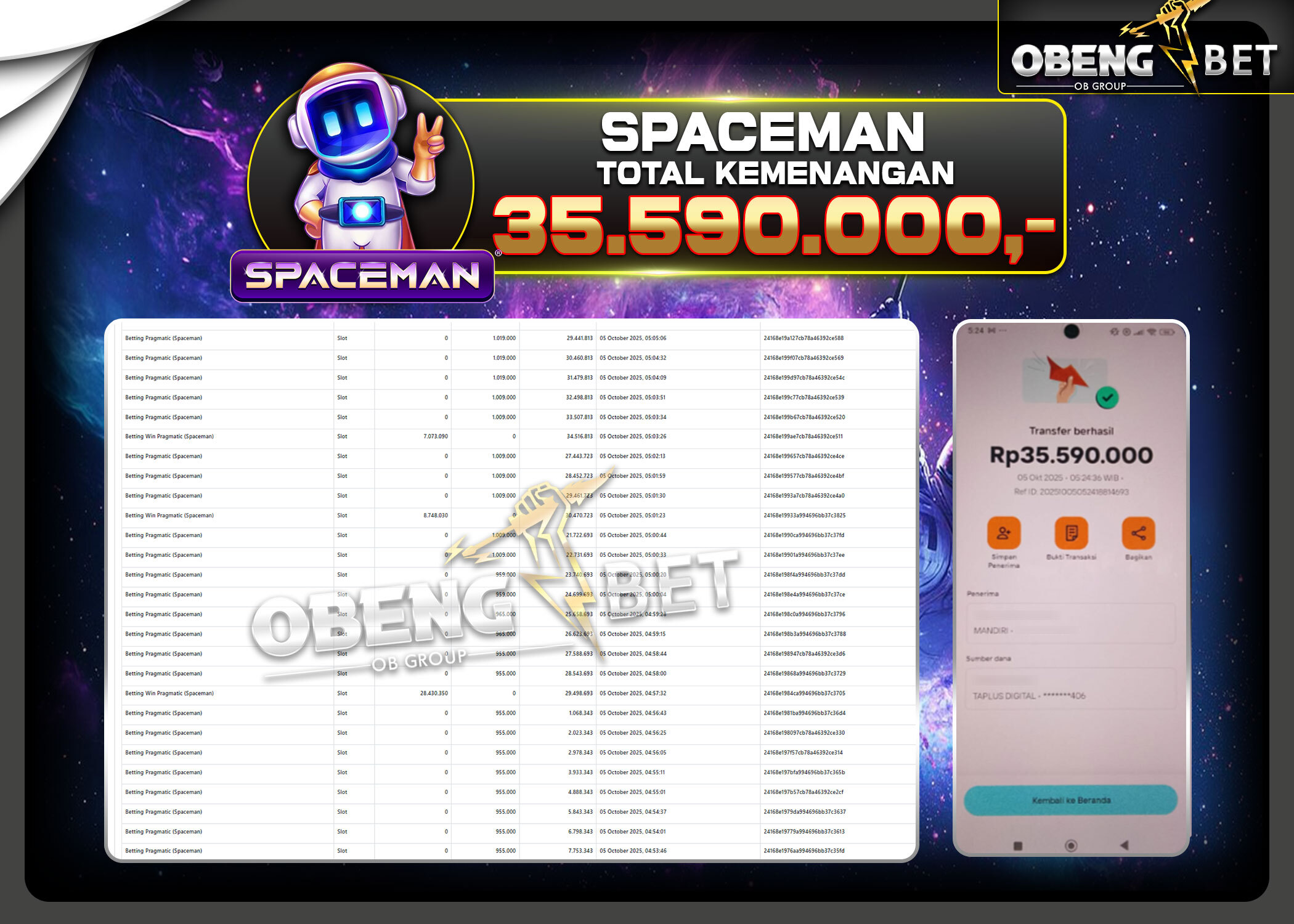 Bukti Kemenangan Member OBENGBET Live Casino 05 Oct2025 – Situs kami merupakan salah satu situs bandar online terbesar dan terpercaya yang akan selalu membayar berapapun kemenangan pemain di obeng bet. Jika anda belum sempat bermain di situs obengbet kami sangat merekomendasikan link situs ini untuk di jadikan wadah tempat bermain game judi online terbesar dan terpercaya dengan berbagai permain yang sangat populer seperti togel online, slot online, live casino, sportbook, sabung ayam dan banyak permainan lainnya yang sudah di sediakan situs obengbet,