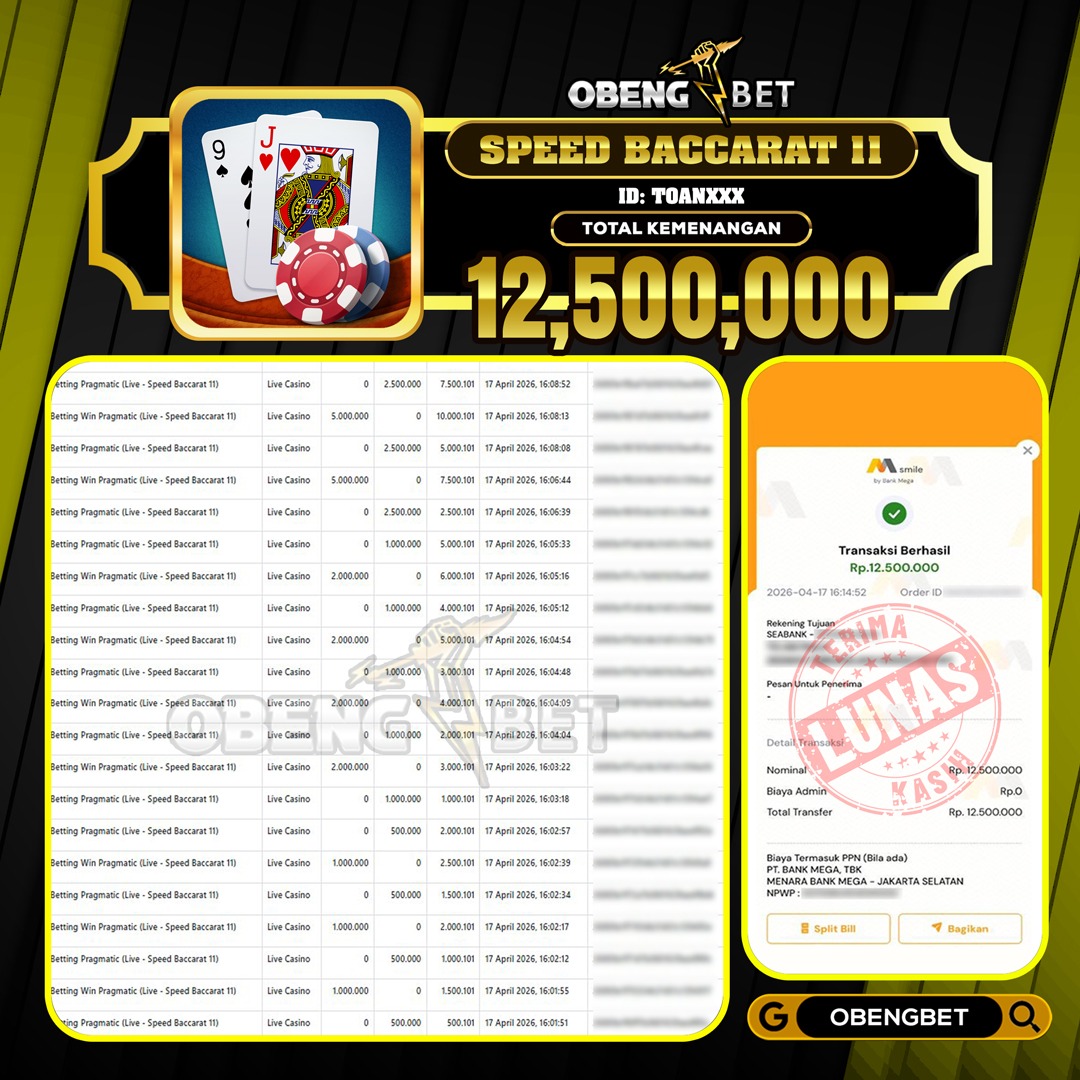 Bukti Kemenangan Member OBENGBET Live Casino 17 April 2026 – Situs kami merupakan salah satu situs bandar online terbesar dan terpercaya yang akan selalu membayar berapapun kemenangan pemain di obeng bet. Jika anda belum sempat bermain di situs obengbet kami sangat merekomendasikan link situs ini untuk di jadikan wadah tempat bermain game judi online terbesar dan terpercaya dengan berbagai permain yang sangat populer seperti togel online, slot online, live casino, sportbook, sabung ayam dan banyak permainan lainnya yang sudah di sediakan situs obengbet,