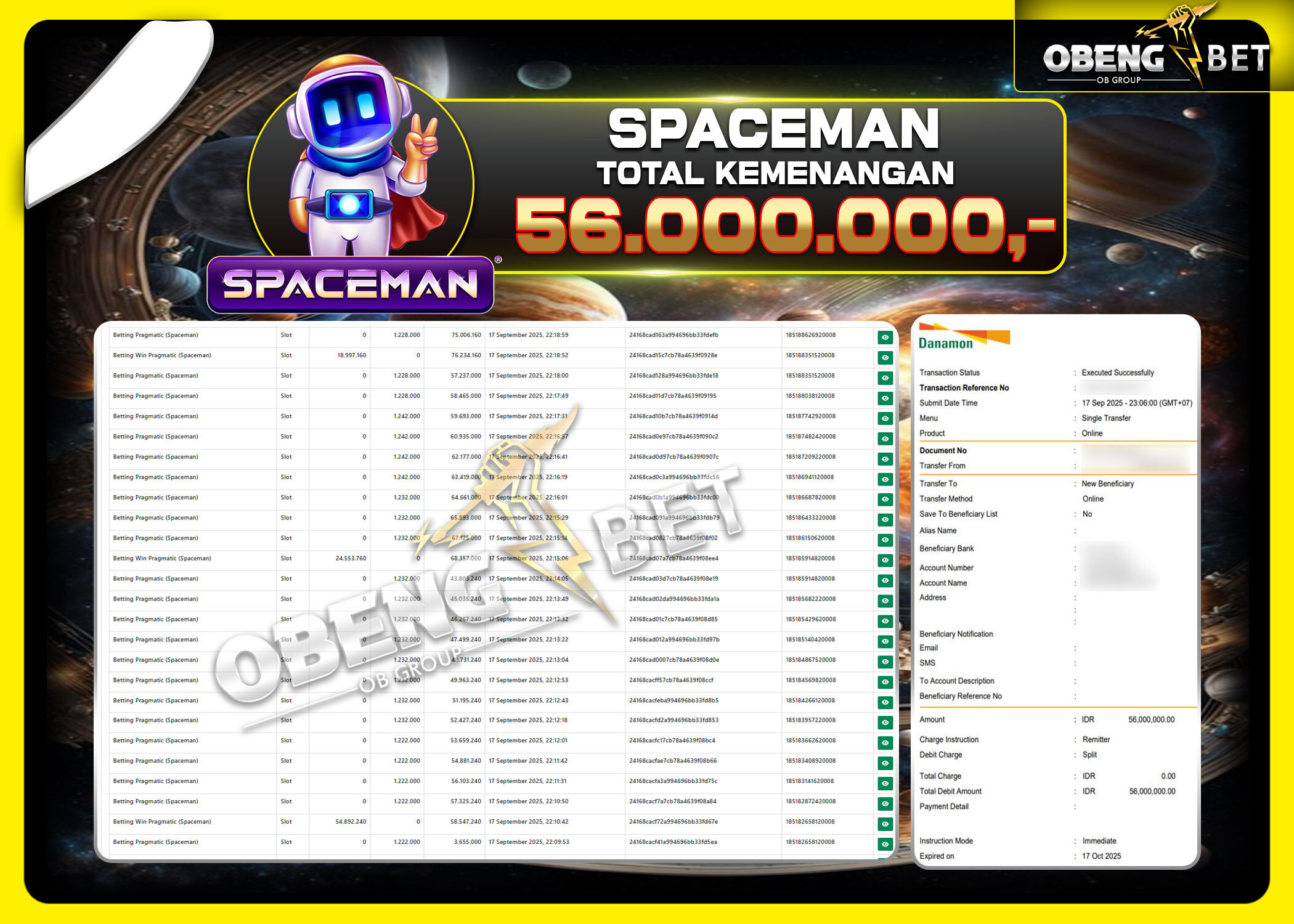 Bukti Kemenangan Member OBENGBET Live Casino 17 sept 2025 – Situs kami merupakan salah satu situs bandar online terbesar dan terpercaya yang akan selalu membayar berapapun kemenangan pemain di obeng bet. Jika anda belum sempat bermain di situs obengbet kami sangat merekomendasikan link situs ini untuk di jadikan wadah tempat bermain game judi online terbesar dan terpercaya dengan berbagai permain yang sangat populer seperti togel online, slot online, live casino, sportbook, sabung ayam dan banyak permainan lainnya yang sudah di sediakan situs obengbet,