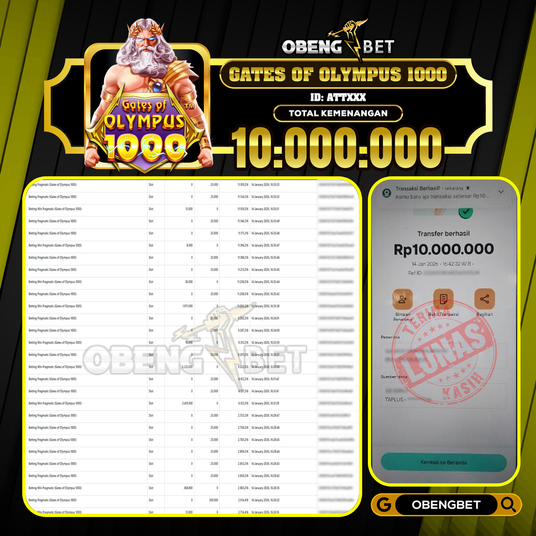 Bukti Kemenangan Member OBENGBET Slot 14 Jan 2026 – Situs kami merupakan salah satu situs bandar online terbesar dan terpercaya yang akan selalu membayar berapapun kemenangan pemain di obeng bet. Jika anda belum sempat bermain di situs obengbet kami sangat merekomendasikan link situs ini untuk di jadikan wadah tempat bermain game judi online terbesar dan terpercaya dengan berbagai permain yang sangat populer seperti togel online, slot online, live casino, sportbook, sabung ayam dan banyak permainan lainnya yang sudah di sediakan situs obengbet,