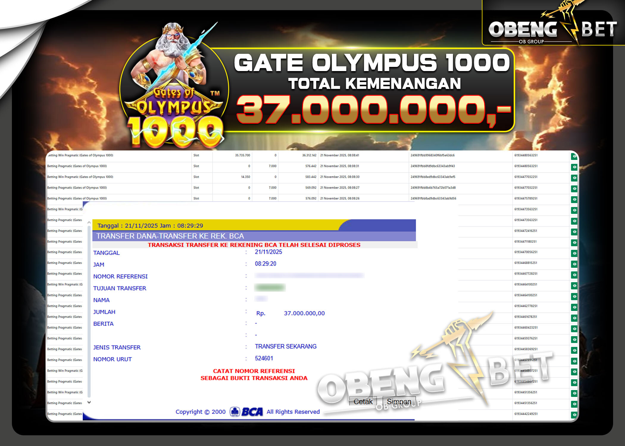 Bukti Kemenangan Member OBENGBET Slot 21 Nov 2025 – Situs kami merupakan salah satu situs bandar online terbesar dan terpercaya yang akan selalu membayar berapapun kemenangan pemain di obeng bet. Jika anda belum sempat bermain di situs obengbet kami sangat merekomendasikan link situs ini untuk di jadikan wadah tempat bermain game judi online terbesar dan terpercaya dengan berbagai permain yang sangat populer seperti togel online, slot online, live casino, sportbook, sabung ayam dan banyak permainan lainnya yang sudah di sediakan situs obengbet,