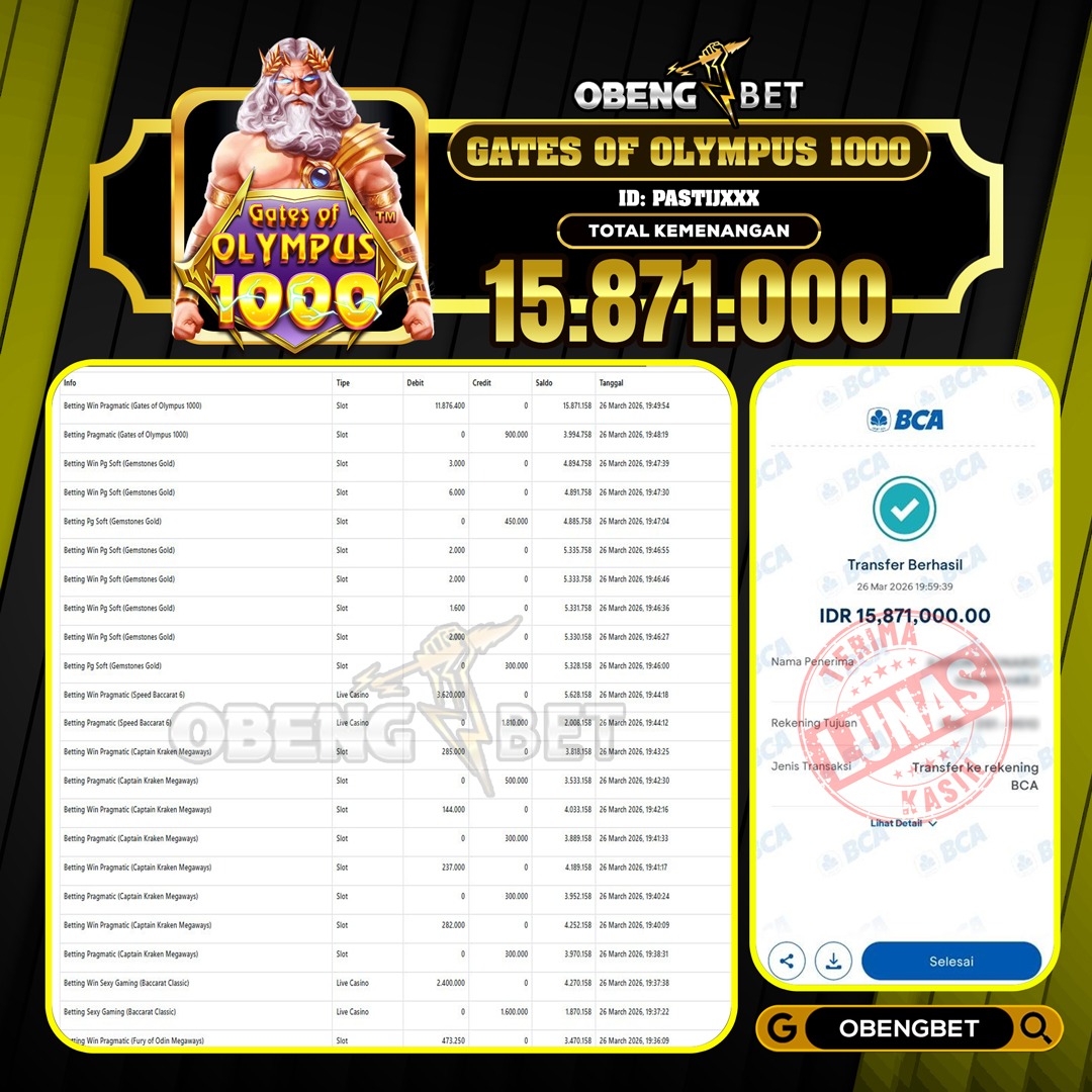 Bukti Kemenangan Member OBENGBET Slot 26 March 2026 – Situs kami merupakan salah satu situs bandar online terbesar dan terpercaya yang akan selalu membayar berapapun kemenangan pemain di obeng bet. Jika anda belum sempat bermain di situs obengbet kami sangat merekomendasikan link situs ini untuk di jadikan wadah tempat bermain game judi online terbesar dan terpercaya dengan berbagai permain yang sangat populer seperti togel online, slot online, live casino, sportbook, sabung ayam dan banyak permainan lainnya yang sudah di sediakan situs obengbet,