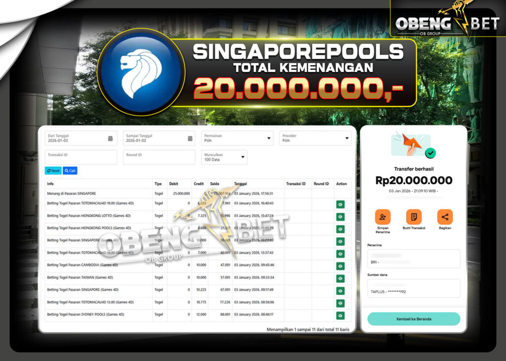 Bukti Kemenangan Member OBENGBET Togel 03 Jan 2026