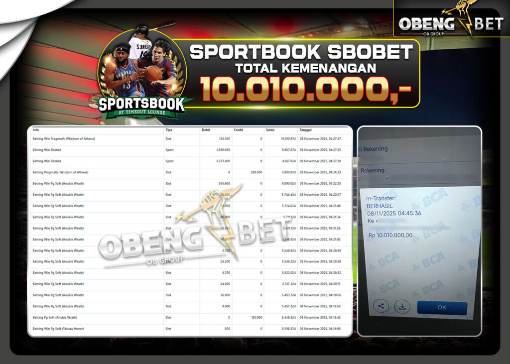 Bukti Kemenangan Member OBENGBET SportBook 08 Nov 2025 – Situs kami merupakan salah satu situs bandar online terbesar dan terpercaya