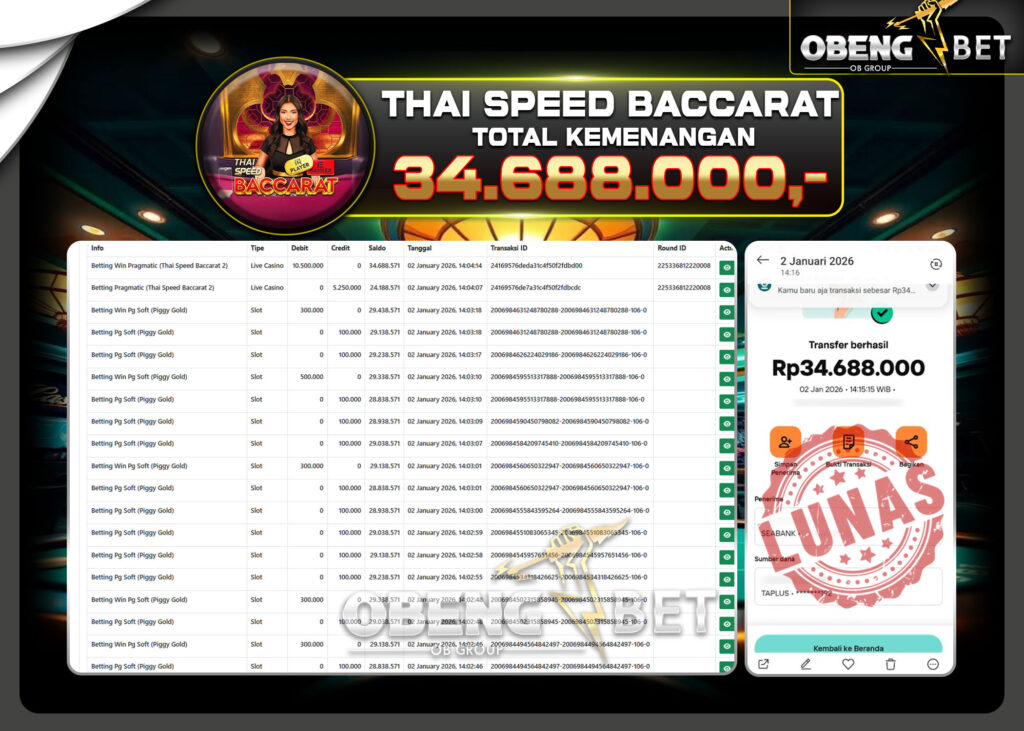 Bukti Kemenangan Member OBENGBET Live Casino 02 Jan 2026