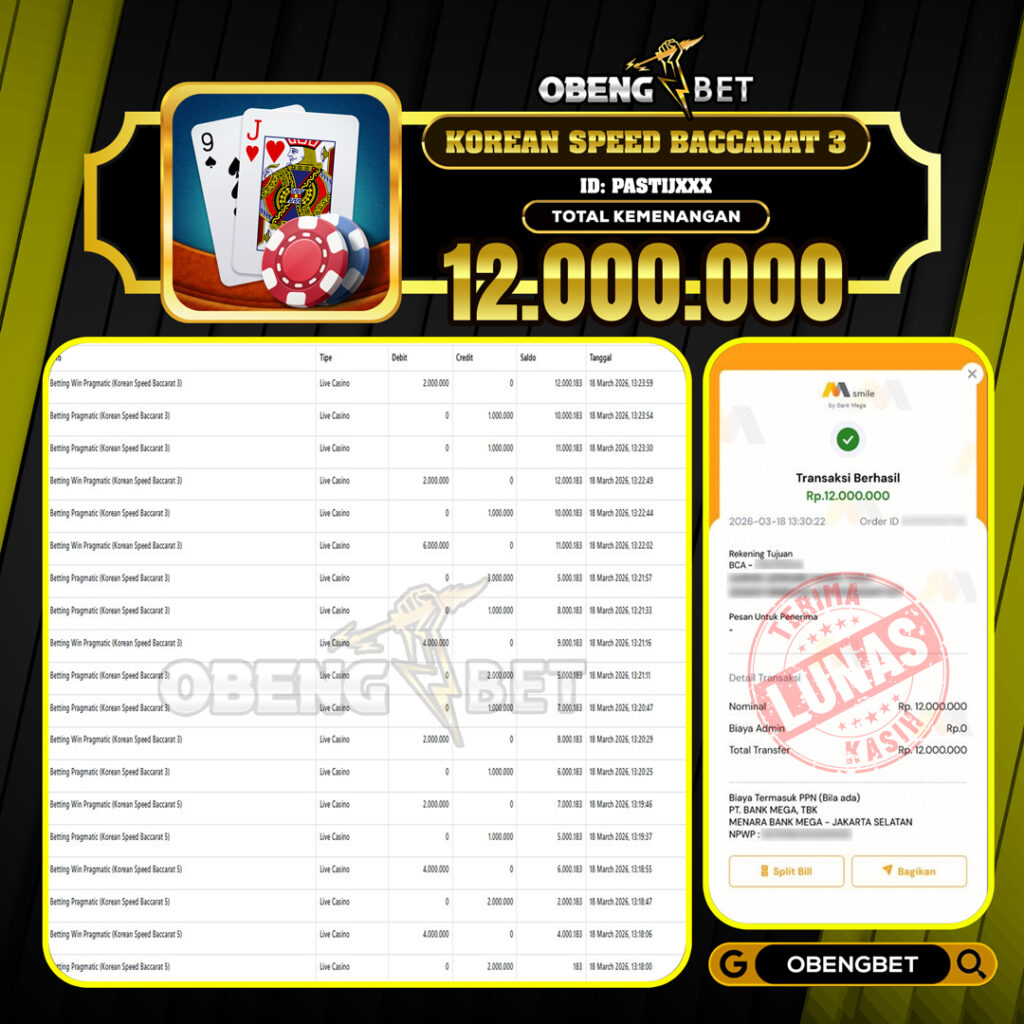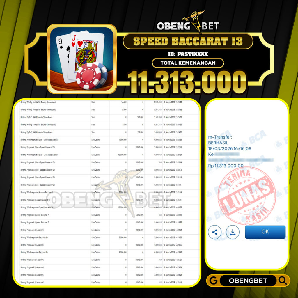 Bukti Kemenangan Member OBENGBET Live Casino 18 March 2026 – Situs kami merupakan salah satu situs bandar online terbesar dan